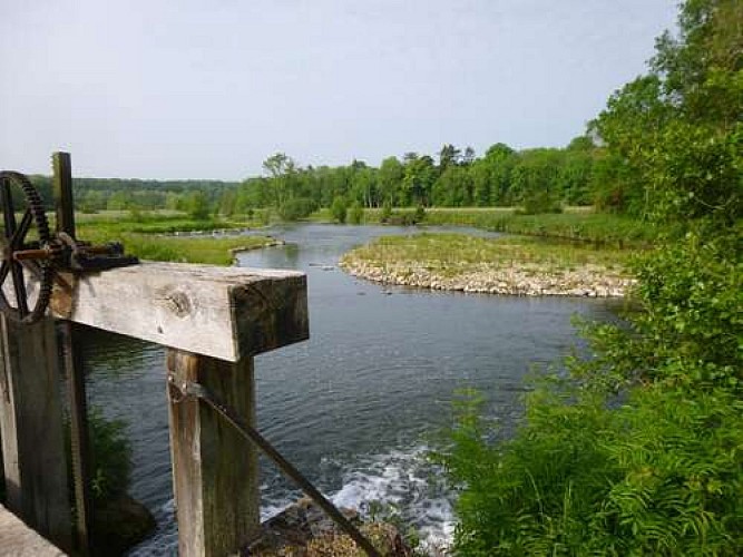 Tourner à gauche et suivre la route jusqu'au moulin. Arrivé au moulin, tourner à droite et passer le ru. Suivre le chemin qui bifurque à gauche.