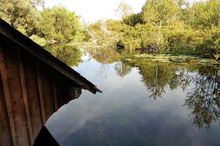 Au carrefour : possibilité d'emprunter une variante. Tourner à gauche et descendre jusqu'au lavoir. Prendre le chemin de droite, parcours inondable. Au bout du chemin, tourner à droite et rejoindre la D 110.