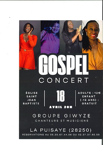 Venez profitez d'une soirée musical avec le groupe Giwyz, dans l'église de la Puisaye. Composer de chanteurs et de musiciens, partez pour une soirée Gospel. Réservation obligatoire.